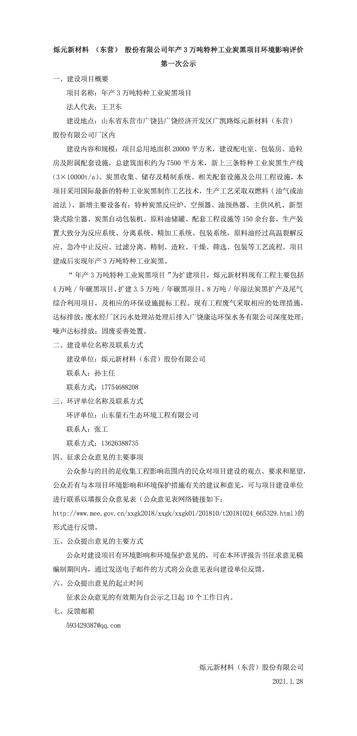 公司(sī)年産3萬(wàn)噸特種(zhǒng)工業炭(tan)黑項目(mù)環境影(ying)響評價(jià)第一次(ci)公示