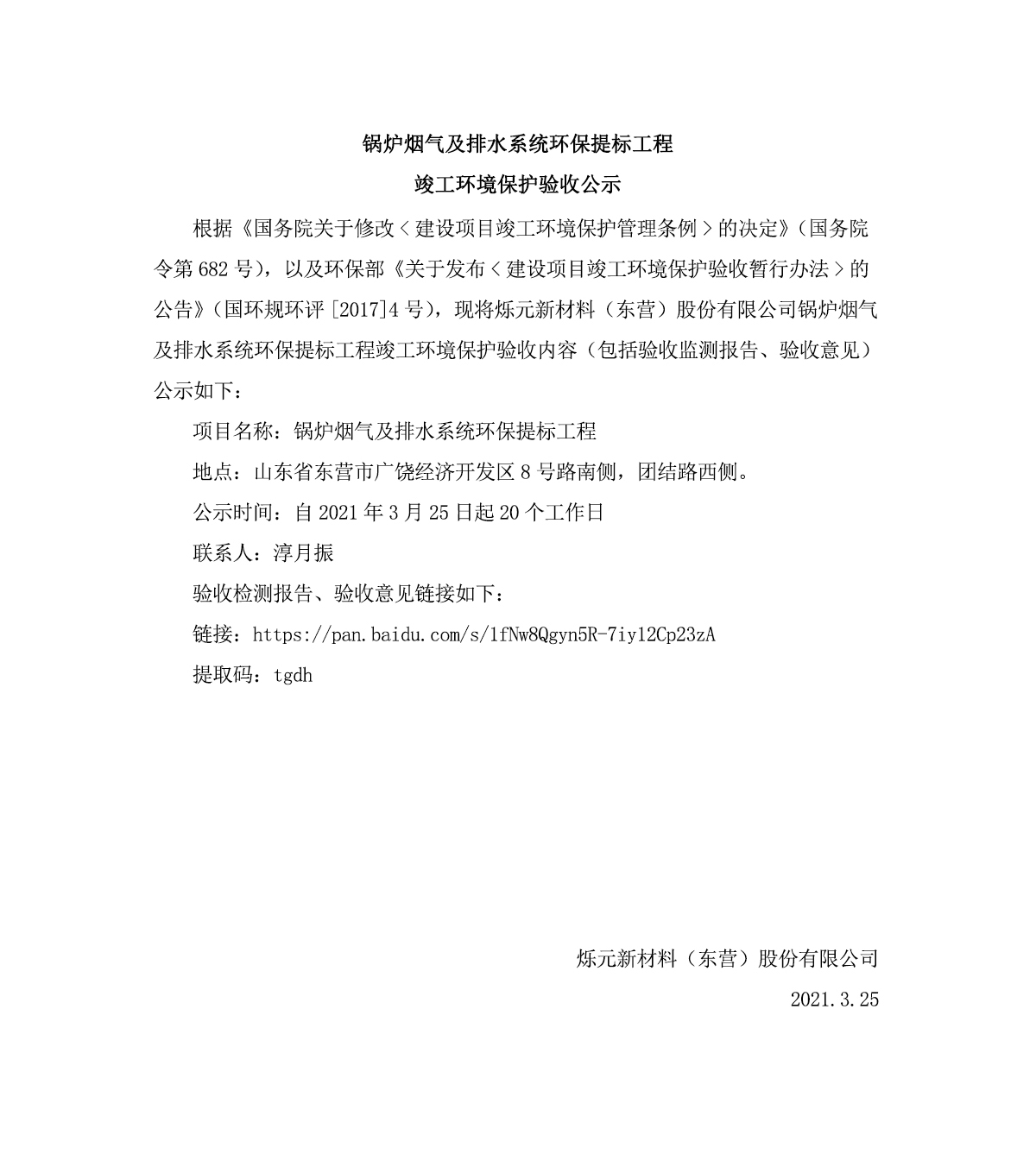 鍋爐(lu)煙氣及(jí)排水系(xì)統環保(bao)提标工(gōng)程 竣工(gōng)環境保(bǎo)護🔴驗收(shōu)公示